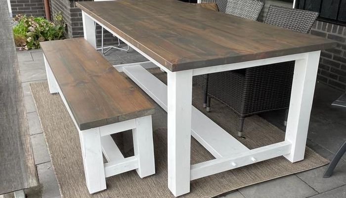 Benodigdheden behandelen van een houten buiten tafel