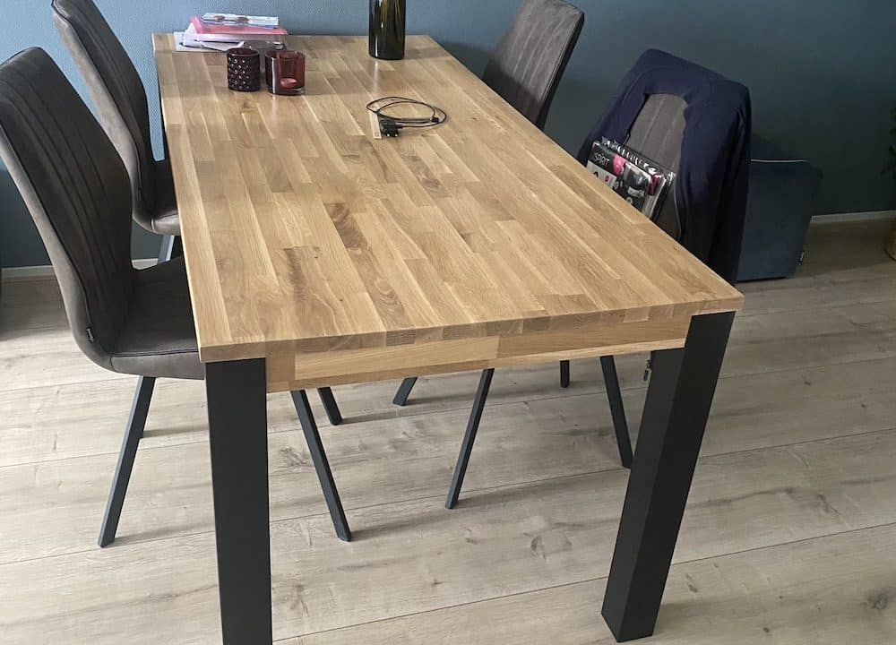 Onbehandelde of slecht beschermde tafels krijgen snel kringen, vlekken en verkleuring door drinken, olie en vuil. Door de tafel te beitsen met TopOil van Osmo wordt het hout langdurig beschermd, voedselveilig afgewerkt en eenvoudig te onderhouden.