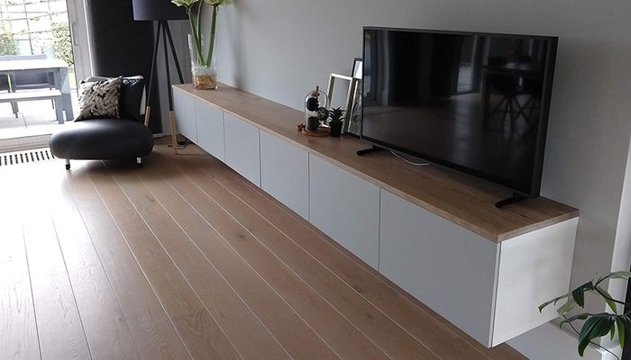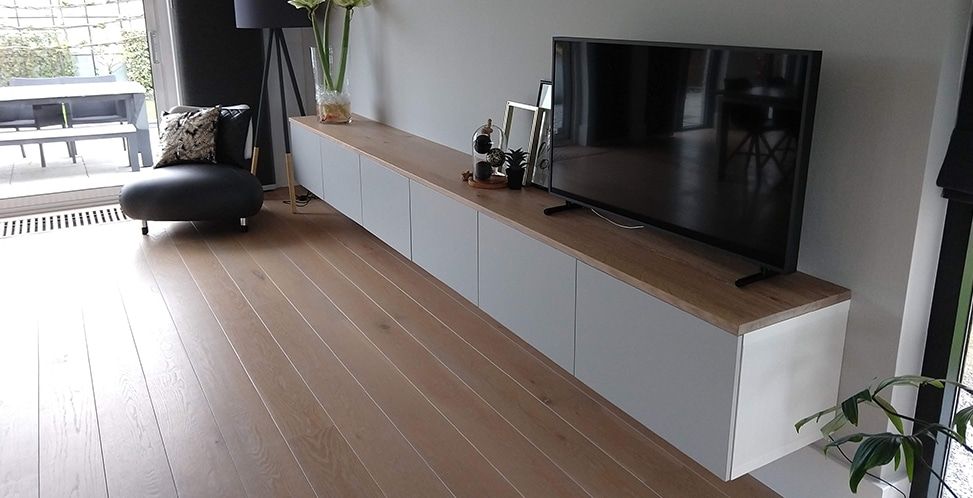 De houtsoort die het meest gebruikt wordt is een eiken tv-meubel. Deze houtsoort is licht van kleur en zorgt voor een rustige uitstraling in de woonkamer. Een voordeel van een eiken tv-meubel is dat het behandeld kan worden in allerlei uitstralingen en kleuren. Wilt u een natuurlijke uitstraling of juist een zwart tv-meubel, het kan allemaal met eiken.