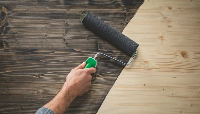 - Breng de eerste laag van de zwarte beits aan met een kwast of roller. Zorg ervoor dat je zoveel mogelijk in de totale lengte van het oppervlak werkt of na-rolt om aanzetstrepen te voorkomen.