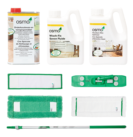 Een houten vloer met Osmo-afwerking vraagt om het juiste onderhoud. Met deze Vloer Onderhouds Bundel heb je alles in huis om je Osmo-behandelde houten vloer schoon te maken, te onderhouden en op te frissen – precies zoals Osmo het voorschrijft.